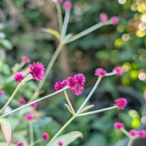 ❀*•*¨*•.¸¸❀*・゚*✰ 千日小坊(センニチコボウ) 𓏸𓈒𓂂𓂃♡ 科名︰ヒユ科 属名︰アルテルナンテラ属 タイプ︰半耐寒性多年草 原産地︰ペルー.エクアドル 草丈/樹高︰30cm~1mほど 開花期︰10~12月ごろ 花色︰赤紫、ピンク 耐寒性︰弱い(半耐寒性) 耐暑性︰強い 花言葉︰「不老長寿」「喜びを伝える」「静寂」「変身」 🌱放任すると草姿が悪くなりますので、6月〜8月: 生育期で、夏までに地面から15㎝ほどのところで切り戻しします。 💫短日植物ですので、9月になったら夜の照明が当たらないところに置きます。 千日小坊は、江戸時代に琉球を経由して日本へ渡来したとされています。