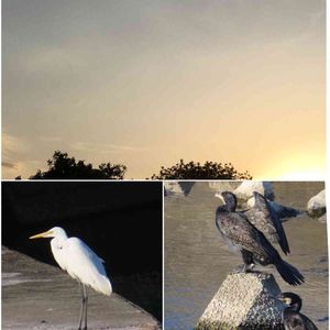カワウと白鷺で集まって朝会議中? カワウくんたち 慌ててどこいくの💦?