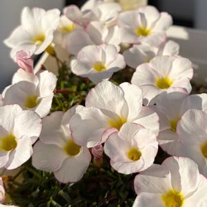 ①〜④ Oxalis White butterfly 🤍 ⑤ Oxalis Sweet Potato🍠 ①〜④ ホワイトバタフライ… ん〜白くないけど White?🤔 可愛いから いっか😆✨ ⑤ 毎年イマイチ元気にならないSweet Potato🍠 今年は 大きめ球根3個の鉢と 小さめ球根8個くらいの鉢に分けて植え付けしてみました。 小さめ球根の鉢 高くは伸びないけど 今になって葉っぱも元気でお花も咲くようになりました🌸 ちょっと窮屈なくらい⁉️😂