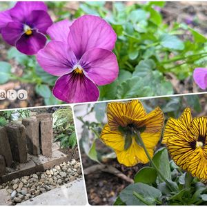 長いポット生活を終えて 花壇へ舞い降りた こうめももかさんとタイガーアイ🐯 ちっちゃくて可愛い😊 植え付け後は沈んだレンガの底上げ作業をちょっとだけ頑張りました🙌