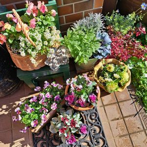 リングの寄せ植え ①玄関前に ②10日ほど前に寄せ植え 色合いが優しすぎたかな… ちょっと物足りない。