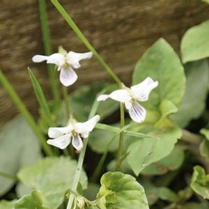 アオイスミレ(葵菫)? 純白の花で葉の形がフタバアオイに似て丸いことから名が付きました😊