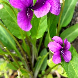 スミレ(菫) 顔は見えませんが、スッーとたった茎は無毛で、葉っぱもたっている スミレだと思います💜 2025.4.7
