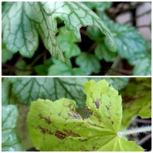 ヒューケラ🌱 私の大事なヒューケラをかじるヤツがいる😩探しても鉢を振っても見つからず、今朝もかじられてた😮💨見つけたいけど何かコワイ😂💦