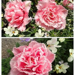 適度に気温があってお天気が良いと庭作業が捗ります。ありがたや~☺️ 2年目のカーネーション✨ 夏前に蒸れて弱らせて曲がって以来 そのまま成長したので、暴れた株姿で花をたくさん付けました💮💮😊 でも、このままではまた夏前に倒れてどうにもならない姿になりそうなので、元気な今 思いきって曲がった部分をバッサリ切りました✂️ ちょっと勿体無いけど😓株は喜んでくれてるはず😘 隣は唯一八重咲きのチューリップ✨ やっと咲きそうです🌷 エイリアンみたいな姿から徐々に色付いてきました🎵