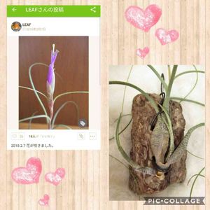 ブッツィー ブッツィーは私の好きなチランジアの1つです😊 こちらもホームセンターで購入しました🌿 花芽がついていますが…咲くかなぁ…😃 ちょっと、花芽周りが紅くなっているので、期待してます✨