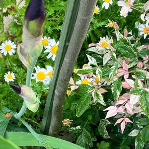 こちらは新しい葉っぱを沢山出しているナンテン・トワイライトと、もうそろそろおしまいのノースポール。今度雨が降ったらノースポールは刈り取ろうと思っています😃