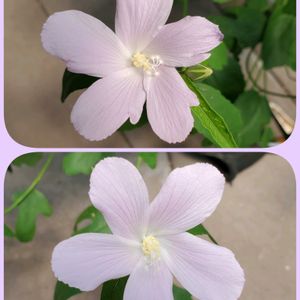 朝起きたら咲いていて 午後1時時ごろ 閉じ始め、 午後3時前には キュッと閉じました。 そして、次の日の朝、花がらは落ちています。 半日花ですが、その儚さが また気に入りました💕 💕原種ハイビスカス ロバツス💕 1日目 2個 咲き 2日目 3個 咲きました 隣に置いている バタフライピーは 午前中から、暑さと乾燥で葉が閉じてしまってますが この子は、暑くても少し厚手の葉っぱがピントと広がっていて、元気です。 一つ前、二つ前に写真をアップしてます。