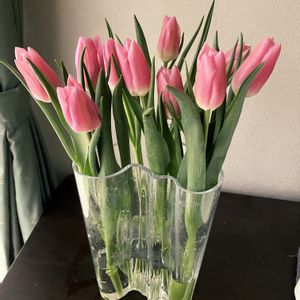 八百屋チューリップ🌷 尖り気味で緑がまじったピンクの花びらと、丈の長さで、 動きがあります。