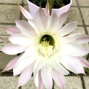 今朝、サボテンの花が 咲いてました! ビヨーンと首を伸ばした 大きな花にびっくり‼️綺麗 (花盛丸)