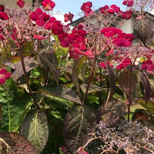 お出かけ先で出会った 山紫陽花、紅 花が咲き終わりの頃が 一番赤くなります。