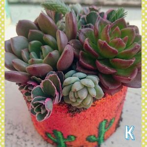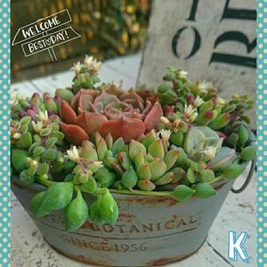 こんばんわ🙋❗ 今日は、過ごしやすく 庭しごと、多肉事🌵🌿🌱 楽しい一日🎵 プレ企画で、いただいた さなぼてんちゃんの リメ缶に 植えてみました。 個性的な色なので 少し濃いめの多肉を チョイス🌵してみました。