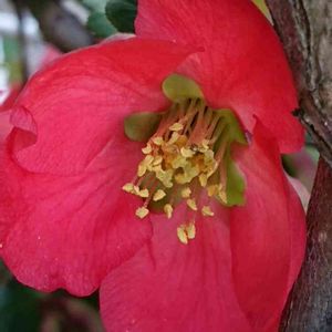 ボケの赤い花が開きました🌺 一重も綺麗ですねo(*⌒―⌒*)o