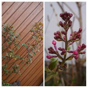 玄関先の花畑の薔薇🎵新芽がいっぱい 元気に伸びてます(*^^*)♪ 裏庭にはライラックの蕾も大きくなってきました(*^。^*)♪