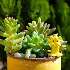黄色いリメ缶に黄色いテアシオカヒトデ💛 葉挿しっ子達がこんなに大きくなるとお母ちゃん嬉しいよ(ˊ˘ˋ*)♡