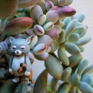 こんにちは きゅうちゃんさんのフクロウ祭り🦉 に参加します😊 セダムとディゴンドラの森🌳 コポたんとフクロウさんは仲がいいみたい🤗それを見ているツチグリ坊や 目つき悪いぞ〜(๑´ლ`๑)笑