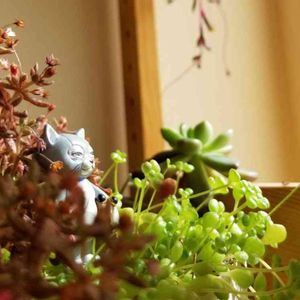 2年くらい前からいる オルビキュラリスさん 小さな苗だったので 小さな鉢に植えてましたが 少しづつ大きくなってきているようなので 期待を込めて もうひと回り大きな鉢に植え替えの予定 以前のDAISO多肉のプラ鉢は 黄色の安っぽさが好きじゃなくて きちんと下地塗りもしてリメイクしたの 鉢も2年くらい経つけど 絵の具が褪せたり 剥がれたりもしていないので嬉しい☺️ このサイズの四角いプラ鉢 小苗に使えて 割と気に入っているんです♪ 小鉢や小苗の見張り番は ツチグリくんに任せています😊