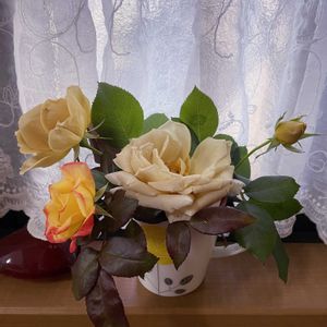 なかなか梅雨入りしませんが大雨や夏のような陽射し、蒸し暑さもあり二番花がほとんどきれいに咲いていません。 そんな中、わりと綺麗なハニーディジョンです🐝 3枚目は挿し木でいただいた1本枝のバラの苗から大きくしている過程。摘蕾でまだお花が見られておらずそろそろ、と思っていたのに蕾は丸かじりされてます🐛 虫たちがかなり活発なこの季節です🐛