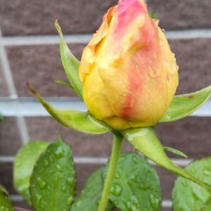 おはようございます。 ハニーディジョンの2番花が咲きそうです。でも凄い小さくて、これで直径1.5cmくらい。肥料が足りないのかな。 小さくても可愛く咲いてくれたらいいけれど。 水曜ローズショーに参加します。