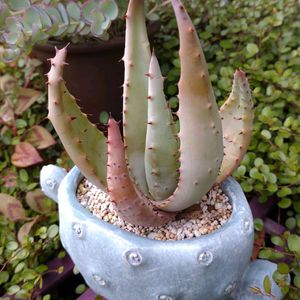 ダイソーにて購入 多肉植物の札が付いていました。 この子のお名前ご存じの方いらっしゃいますか? アロエのライツィー?ペグレラエ? 教えて下さい(>_<) アロエは、はじめましてだけれど。。。水ぶっかけちゃったけれど大丈夫だったかな。。。