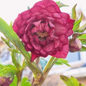 お庭のクリスマスローズ開花35 曽田園芸さんの多弁A フリルパープルリバーシブル 少し赤みが強く写ってしまいましたが赤紫系のカラーです。 この子は先程の子と違い横向きも正面もかわいらしい🥰 フリフリがゴージャス✨✨