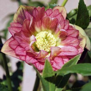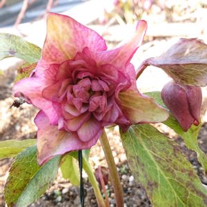 最近、うちのメンバーになったクリスマスローズ ダブルアプリコットピコティ多弁さん、指使わずに撮影するとこんな感じ😅 お顔は見えないけど雰囲気はわかりますかね?うち一番のフリフリさんです💕💕 咲き始めはピンク色が強めですが、咲き進むとだんだんアプリコット色が強くなってきています😊