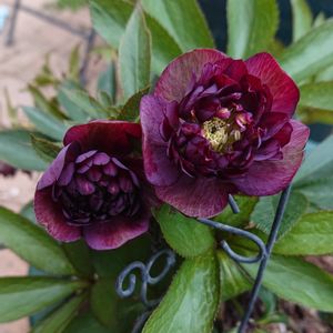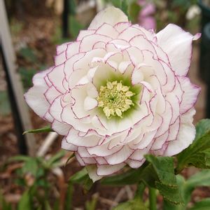 大半のクリスマスローズの見頃は 終わってしまいましたが、 まだまだ頑張っているお花もチラホラ。 こちらは吉田園芸作出。 花弁に白い覆輪があるように見えて、 実は元々白いお花に ワインレッドのスポットが重なって ベタブロッチになっています。 幾重にも花弁が折り重なり、 薔薇や芍薬を思わせる ゴージャスな花姿を楽しんでます。