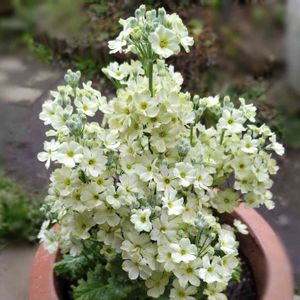 1/26に作った白とライムカラーの色の花を集めた寄せ植えです😃 1ヶ月半が経ちボリュームが出てきました✨ 本当に寒い❄️🥶❄️2月でしたが、全く痛むこともなく、すくすくと育ってくれました。寒さに比較的強い花を集めてあるので、家の中に入れることもなく、寒風が直接当たることを避けられれば明るい軒下で大丈夫です✨ 今はウィンティーとビオラが主役ですが、もう少したつとローダンセマムが主役になります。寒さにあたり根をしっかりはったので、このまま、5月くらいまでは行けそうです😁
