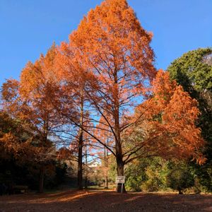 メタセコイアの紅葉🍁 リュウノヒゲの青い実🔵