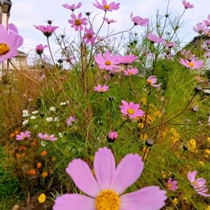 雪にも霜にも負けない我が家のコスモス、今日も元気です🌸🌸🌸 でもキバナコスモスは終わりました😥 ③リュウノヒゲに緑色の実を見つけました🟢 ラピスラズリのように青くなるのはいつかな?