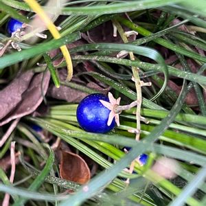 リュウノヒゲの葉をかき分けてみたら 奥の方から美しいブルーの輝き✨ まるでロイヤルブルーだ🔵😍