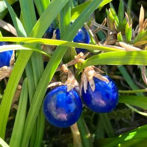 💚リュウノヒゲ(ジャノヒゲ)💚のわっさわっさと茂った細い葉っぱをかき分けると、中にはコバルトブルーの美しい実がたくさんできていました😍💖