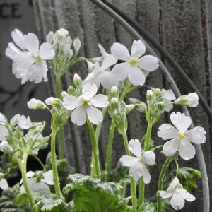 💕ウインティー四種💕 サントリーのウインティー Winty サクラソウ科プリムラ属 『多くの花穂をあげてふんわり咲きあふれる。開花時期が長く、半日陰でも楽しめる 厳冬期のガーデニングアイテムとして大活躍 ⬅️サクラ(白からほんのり優しいピンクに色づく、柔らかなピンクのグラデーション。ふんわり草姿) ↗️ライムグリーン(淡いライムグリーン。他のサクラソウにはない色合い。コンパクトな草姿。花持ちが非常に良い) ➡️ ローズ(鮮やかな赤紫色の花は、シリーズのアクセントになる存在感を放つ。非常に育てやすい) ↘️ピーチ(全体的にアンティークな色調で、ピンクからイエローグリーンへと移ろう柔らかなグラデーション。花持ちが良い)』 “サクラ“は、寄せ植えに入っていたもので、早くから綺麗な姿で咲いてました。茎もスゥーっと伸びて花が大きく見事に育ってます。 “ライムグリーン“、“ローズ“、“ピーチ“は、ネットで購入、冬に強いというので、ポット植えから鉢植えにして、温室にも室内にも入れずに置いてたら、ダメになる寸前でした😥 軒下に避難させて、様子見てから、夜はビニール温室にも入れて管理。ようやく花が咲き出してきました。 “サクラ“のようには大きな花にならず、花がいっぱいになってもこじんまりとした形です。 もっと暖かくなって、“サクラ“のように 花が大きくふんわりとした姿になるのを楽しみしてます。