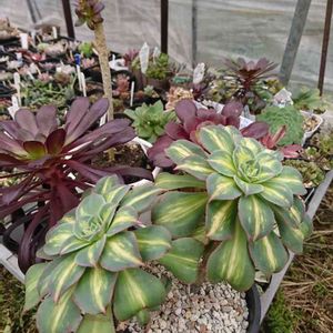 エケベリアが好きです。セダムも好きです。でもアエオニウムはもーっと好きです(年がバレる😁) 100均で出会うのを待っていたけどいつまでも出会えないので、いつもの福井園芸さんでムーンバーストお迎え。 ハウス入れてから、アエオニウムさん全般的に葉が上向きになってきたし、色もよくなった。日光大事ねー。