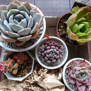 先々週米子市のUnicaに行って来ました💨2回目です。 今回は、左から・・ ベンバディスさん サンオーラさん レディスフィンガーさんの可愛い苗を選びました⤴⤴ 今は彫り彫り木箱で仮住まいしてます❗ また、行きますから~~~(^_^;)))