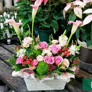 結婚記念日のお祝いに、カゴ入りのアレンジのご注文をいただきました!