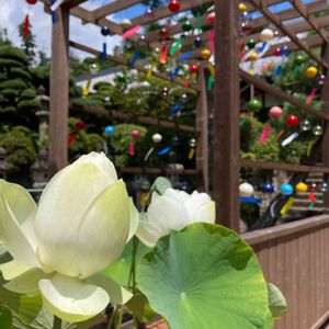 可睡斎の風鈴まつり 蓮と風鈴🎐🎐🎐 風が吹くと涼やかに揺れる風鈴の音♬.*゚ 涼し気な音が伝えられないのが残念です💦 遠州三山の風鈴まつりという事であと2ヶ所、風鈴を見てひんやり気分を味わってきました💙