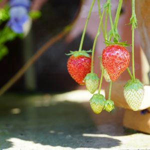 家庭菜園で採れたイチゴでティータイム。採れたてのイチゴ、あまーい!