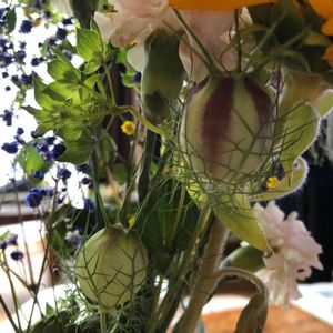 こんにちは😃 ニゲラの実💚✨ これが目当てで種蒔きしたって言っていいくらい… お花も綺麗だけど💙 もうそろそろドライにした方がいいのかな❓ まだ他の枝にはお花もついてるからもう少し待とうかな❓ これ以上そのままにしておくと割れて種が出ちゃうかな❓ 初めてなので、ドライにするタイミングが分かりません😅💦 どなたか教えていただけると嬉しいです♬ よろしくお願いします🙇♀️