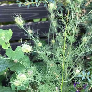 おはようございます☀️ ニゲラがぷくぷく💕 こっそり穴を開けて中を食い散らかす虫もいますが、今年は虫よりニゲラが多くて大半が無傷です(^.^)