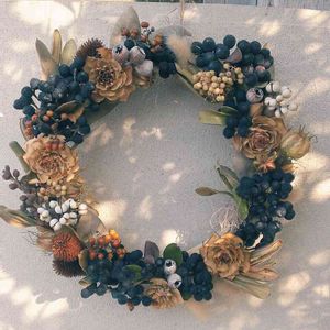 去年のシャリンバイがカラカラドライになったので、ドライフラワーを使ってリースに。