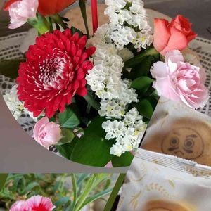 こんにちは〜💐 今日は母の日💕 やっぱり我が家は 花より 団子の方 今年は香梅のバラのフラワーボックス🌹 食べるのが勿体ないです🤗 切り花のカーネーションは産直市場で買いました💐 (^-^✿︎) 皆さまも素敵な一日をお過ごしください💐