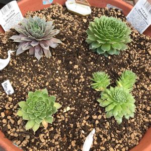 昨日花フェスタで狩った子 センペルがお値打ちだったよ 左上 C.ウィリアム 右上 アゲナツム 右下 アラジン(小型 名前に惹かれて狩ったけど、ネチネチして土とか引っ付く😅) 左下 More Honey(これは家にあった子を植え替えしただけ) 子株は別で植えました 大きくな〜ぁれ😊