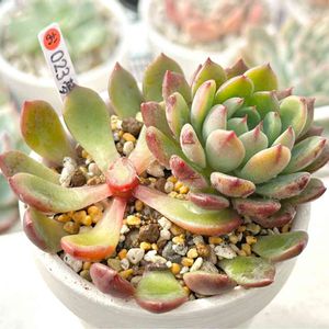 桜にちなんで、もうひとつ。 『桜子』 葉挿しっ子がだいぶ大きく、生意気にも少し色付きました。 うちは秋~冬にお迎えした苗ばかりなので春は葉の成長よりも根の成長を望んでいます♪ 置き場所問題があるので6cm鉢の子は基本、鉢マシせず一定の大きさを保って育てるつもりです。