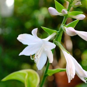 可愛いお花が咲いてきました! ホスタ の葉の色ともお似合いです(^-^)