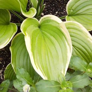 ギボウシ(ホスタ)その3 去年お迎えしたギボウシ達です いろんな斑入りがあって楽しいです 鉢植えの丸い葉もギボウシです お店の人に「おまけだよ」と貰いました とても嬉しかったです、