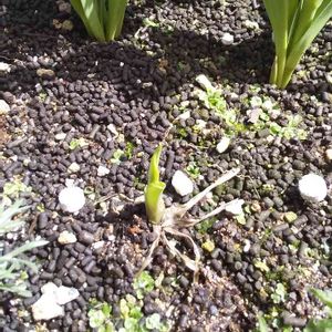 初夏の庭 チューリップもムスカリも長持ちしたけどもうおしまい。 お花を取って球根のために追肥。 ご苦労さん、また来年。