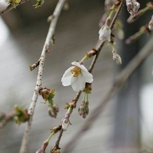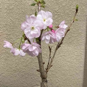 うちの枝垂れ桜の1番花✨ まだ蕾がいっばいで期待もいっぱい💖 狭い庭なので鉢植えだけど、もうワクワク😆