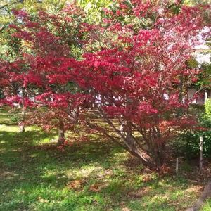我が家の紅葉スポット🍁 手前の赤はコマユミ 後ろは八重の柏葉アジサイです🍁 柏葉アジサイはもっと赤くなって欲しいけど もうはらはらと散りはじめています🍂