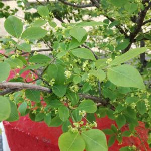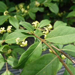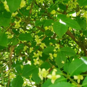 道端の木です。 小さい花です。 枝にコルク質の翼がなし